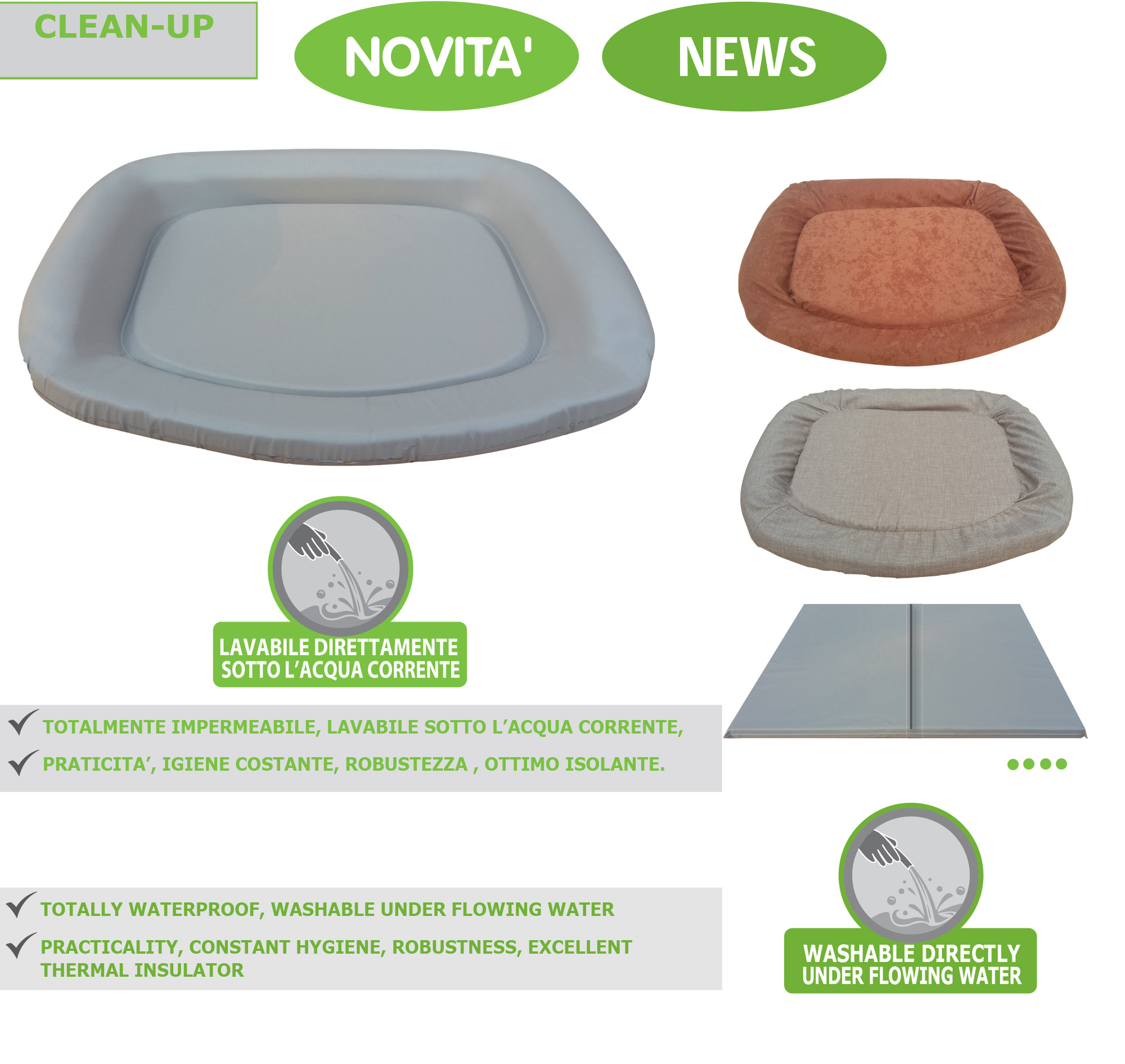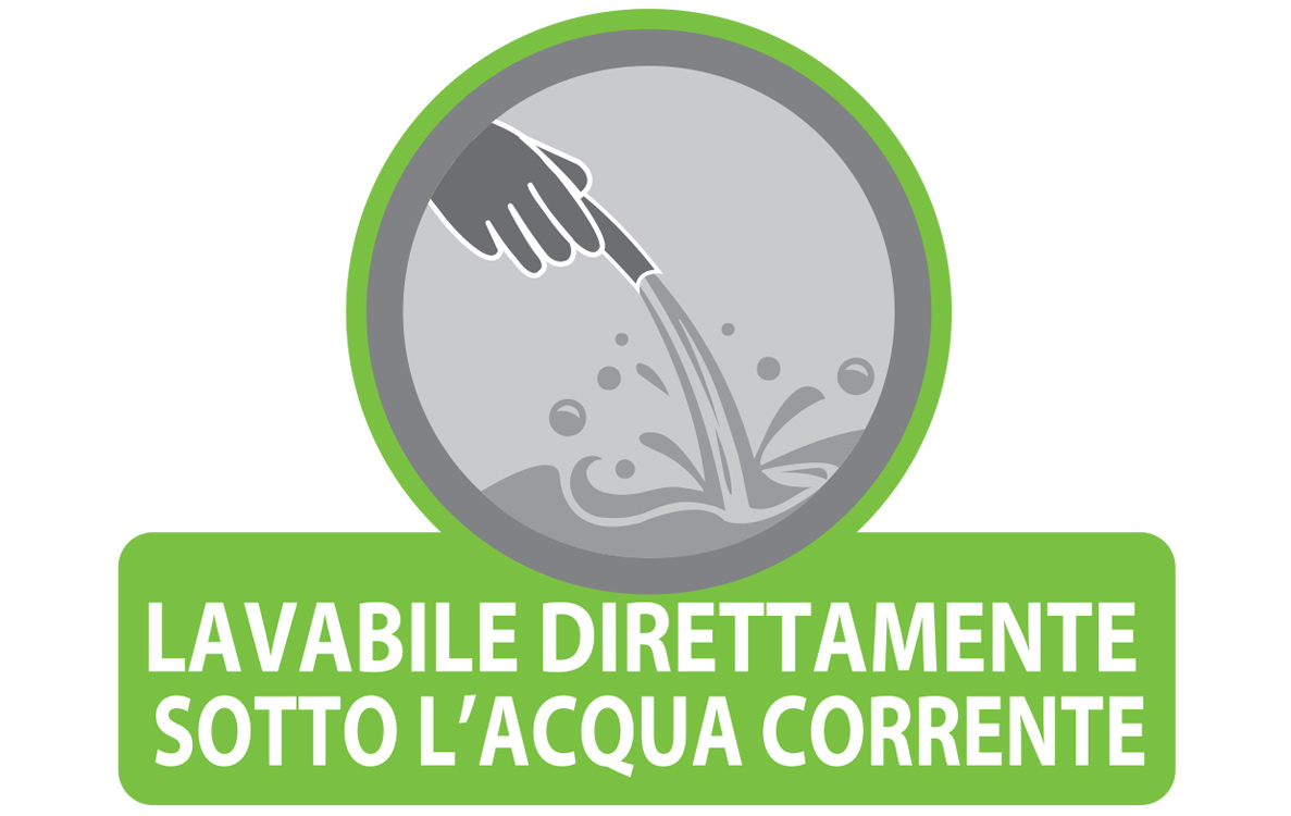 Tessuto completamente impermeabile lavabile direttamente sotto l’acqua corrente.